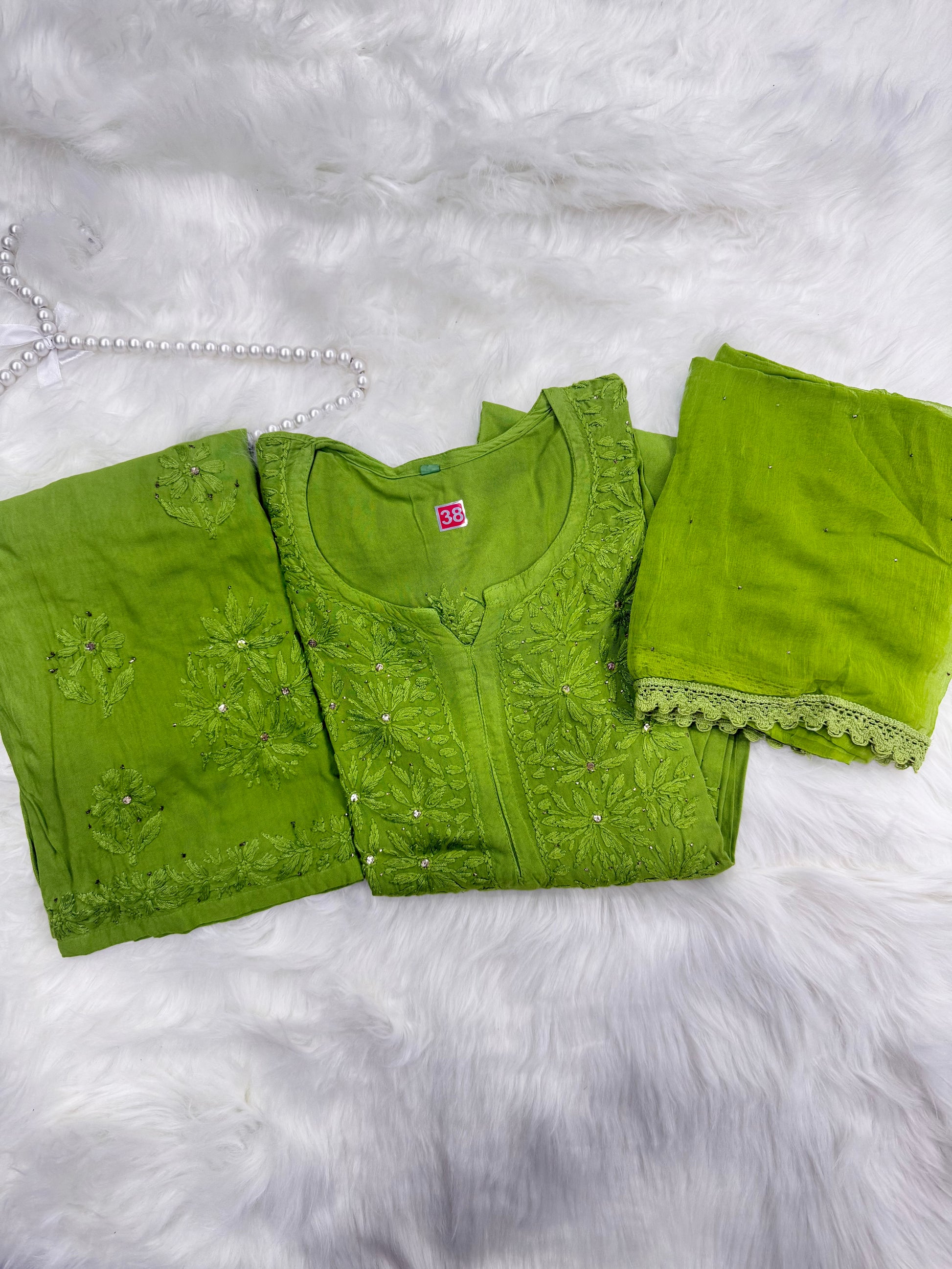Rayon Chikankari 3 Piece Suit with Mukaish Work | Hand-Embroidered Kurta, Dupatta & Bottom